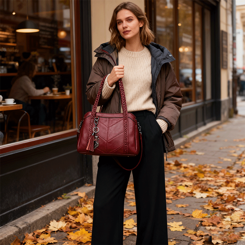 【🔥Horúci výpredaj🔥 Model 2025】Módna taška z hovädzej kože, trojvrstvová veľká kapacita, mäkká a pohodlná koža